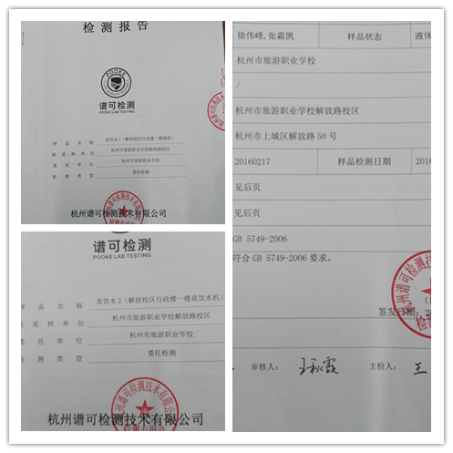 开学初确保各校区饮用水的正常使用,寒假在经历寒流后总务联系换芯检测公司首先对冻裂的管道进行维修,恢复正常后于1月中旬跟踪做好各校区的芯管更换工作。并于2月15日寒假结束之前做好饮用水的抽检,经杭州市饮用水质量检测单位谱可检测技术有限公司的抽检,滨江、解放路、葵巷直饮水机(包括细管饮水机)都做了水样的抽检,检查结果全部符合GB5749-2006DE要求,检测报告已出,按照直饮水的管理要求,3个月换芯,同步安排好质检部门的抽检,请全校师生们可以放心饮用。
